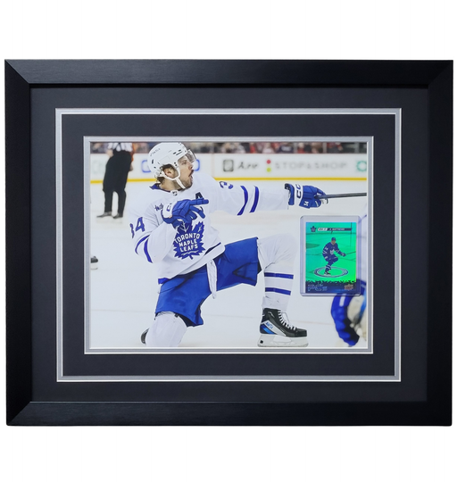 View full detailsAuston Matthews Professionally Framed 11x14 Photo w/ Rookie Card Frame dimensions are 18x22 Already framed, ready to ship! Comes with a Beckett Tam...