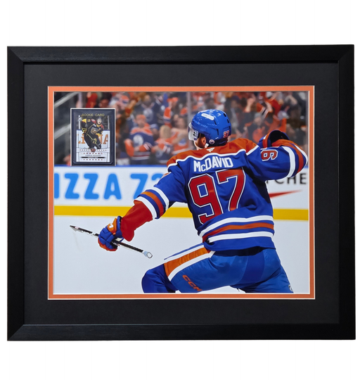 Connor McDavid Professionally Framed 16x20 Rookie Card Display Frame dimensions are 22x26 Already framed, ready to ship! Comes with a 100% money ba...