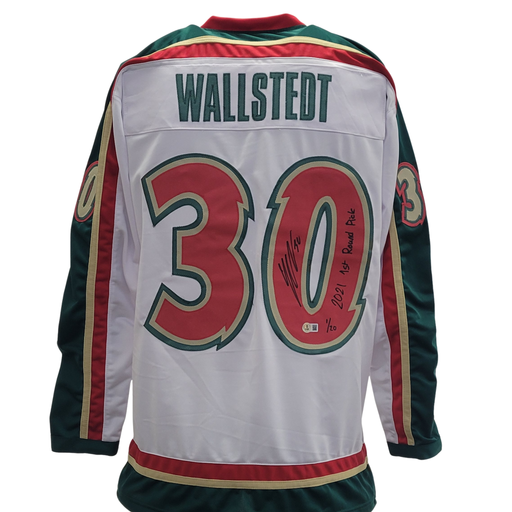View full detailsJesper Wallstedt Signed Green Retro Player Hockey Jersey w/ Inscription "The Wall of St. Paul" PLEASE NOTE: Our Signed Custom Hockey Jerseys are ma...
