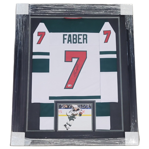 Brock Faber Signed & Professionally Framed Player White Hockey Jersey PLEASE NOTE: Our Signed Player Hockey Jerseys are made with a mesh fabr...