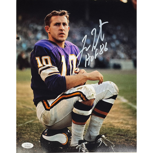 Fran Tarkenton Signed Sitting on Helmet 11x14 Photo w/ 'HOF 86' All items come with a JSA or Beckett tamper-proof hologram, JSA or Beckett Certific...