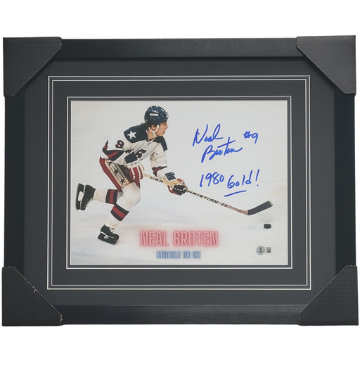 Neal Broten Signed & Professionally Framed 11x14 Photo #6 Frame dimensions are 18x22 Already framed, ready to ship! Comes with a Beckett Tampe...