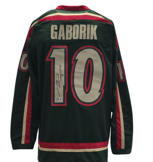 Marian Gaborik Signed Green Player Hockey Jersey PLEASE NOTE: Our Signed Custom Hockey Jerseys are made with a mesh fabric and all letters and numb...
